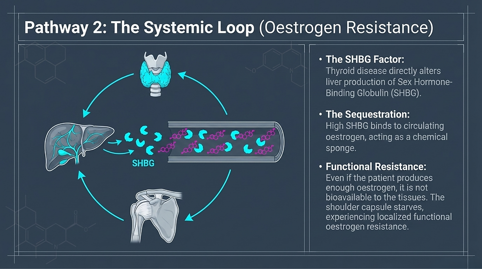This framework helps explain why frozen shoulder disproportionately affects peri- and post-menopausal women, why psychological comorbidity is so frequent, and why outcomes often correlate more closely with psychosocial and metabolic measures than with range-of-motion alone.